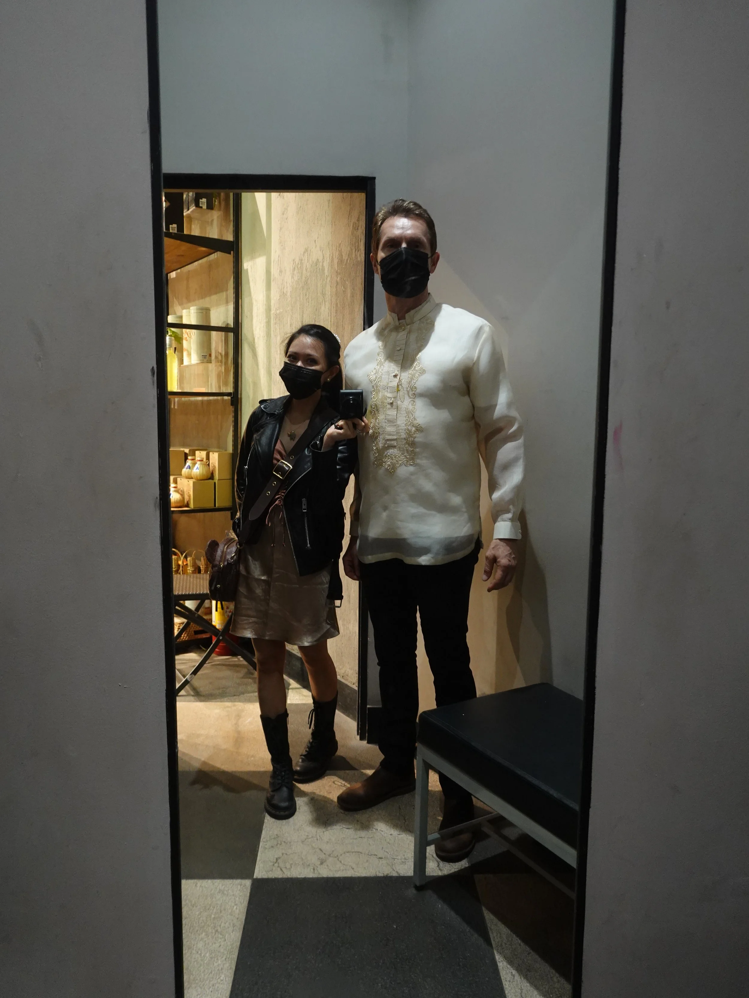 We stopped at a Filipino souvenir store at SM Aura shopping mall, but Wolfgang ended up liking some of the barongs (male national attire of the Philippines — one of them). I decided to pick up two of them for him, as a welcome present.
